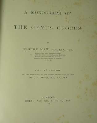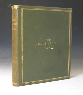 A monograph of the genus crocus. London: Dulau and Co., 1886. First edition, 4to, half-title, 81 hand-coloured lithographed plates after Maw, double-page map, 2 double-page tables, contemporary green morocco gilt, a.e.g., some slight rubbing to edges and fading to backstrip, some foxing to early leaves