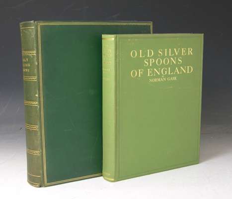 A collection of early English spoons of the 15th, 16th & 17th century. London: Crichton Bros., 1898. 4to, contemporary morocco gilt by C. Fox, backstrip faded, some rubbed to edges, some foxing to inner margins; Gask, Norman Old silver spoons of England. London, 1926. 4to, 32 plates, original green cloth gilt, some foxing (2)