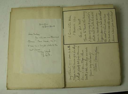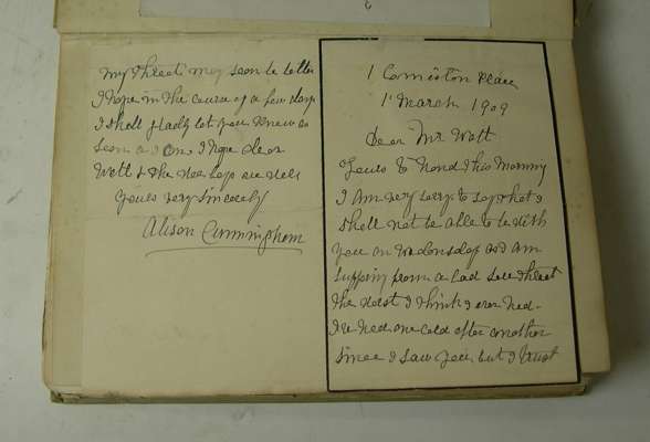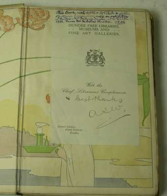 Tipped in at the beginning is a compliments slip from the Chief Librarian of Dundee Free Libraries, Museums and Fine Art Galleries stating that the book and the letters were exhibited in the Fine Art Galleries, Dundee, at the exhibition of 1932.
