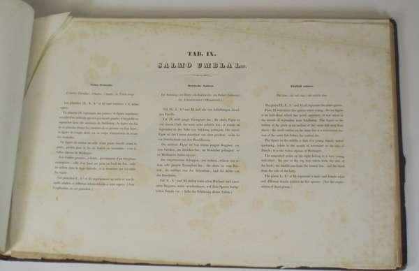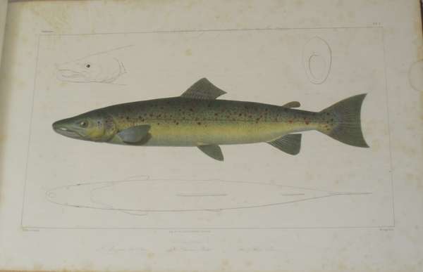 Histoire naturelle des poissons d'eau douce de l'europe centrale. Neuchatel: H. Nicolet, 1839-42. Oblong folio, two parts bound as one, 49 plates [some coloured], creasing to title, foxing throughout, waterstain to outer right edge, contemporary half morocco gilt, rubbed at edges