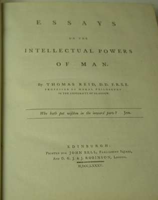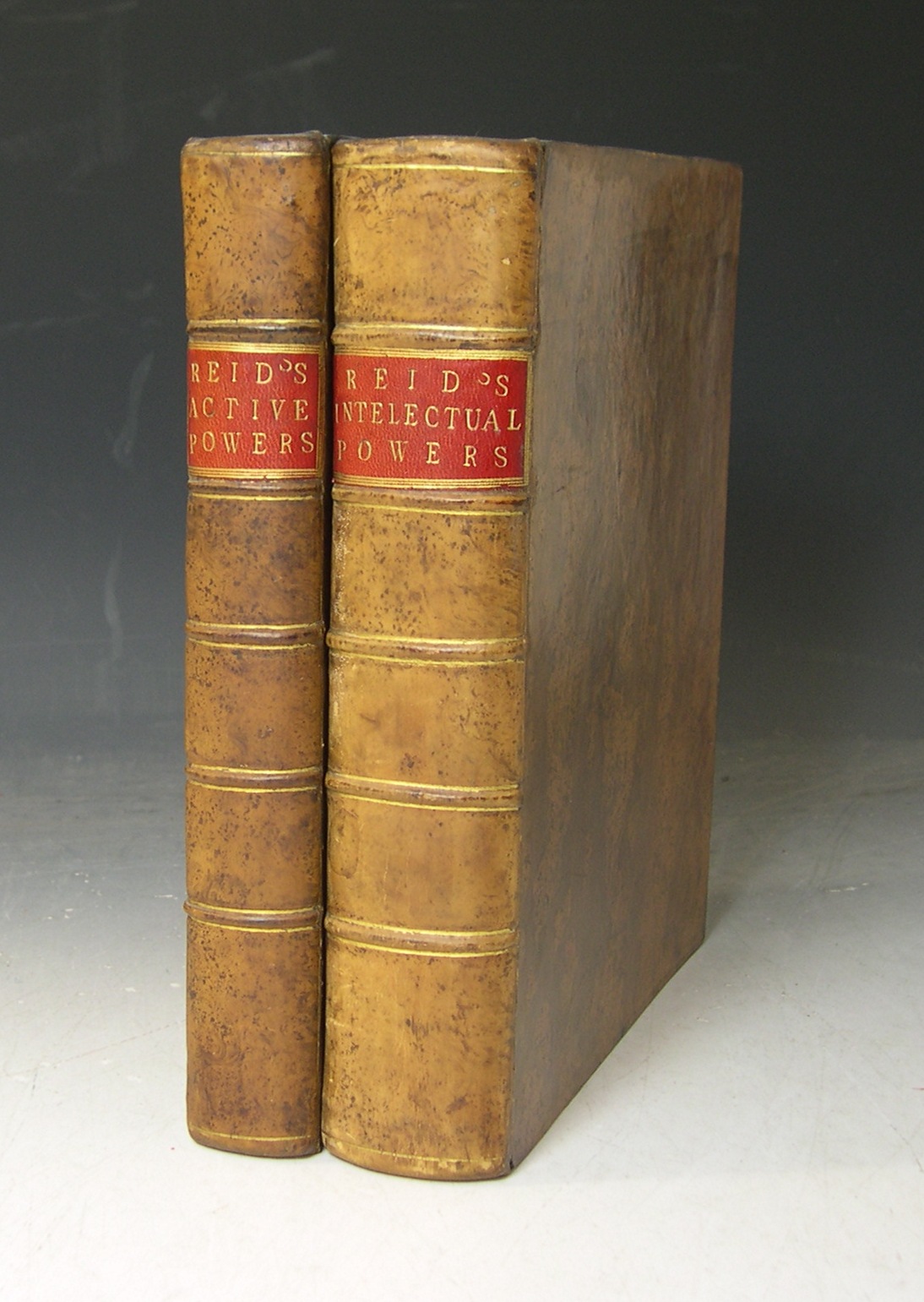 Essays on the active powers of man. Edinburgh: J. Bell & G.G.J. & J. Robinson, 1788. First edition, 4to, contemporary calf gilt; Idem Essays on the intellectual powers of man. Edinburgh: J. Bell & G.G.J. & J. Robinson, 1785. First edition, 4to, contemporary calf gilt, marginal tear to A4 (2)