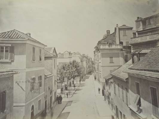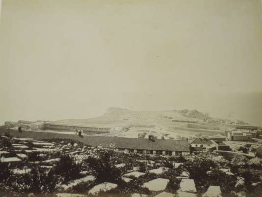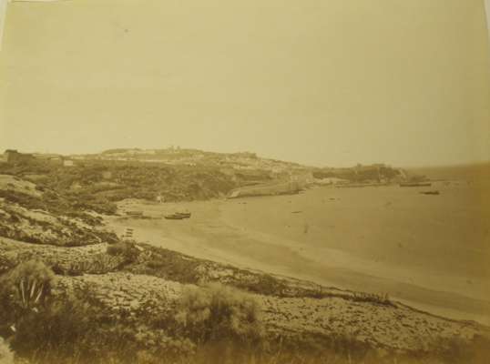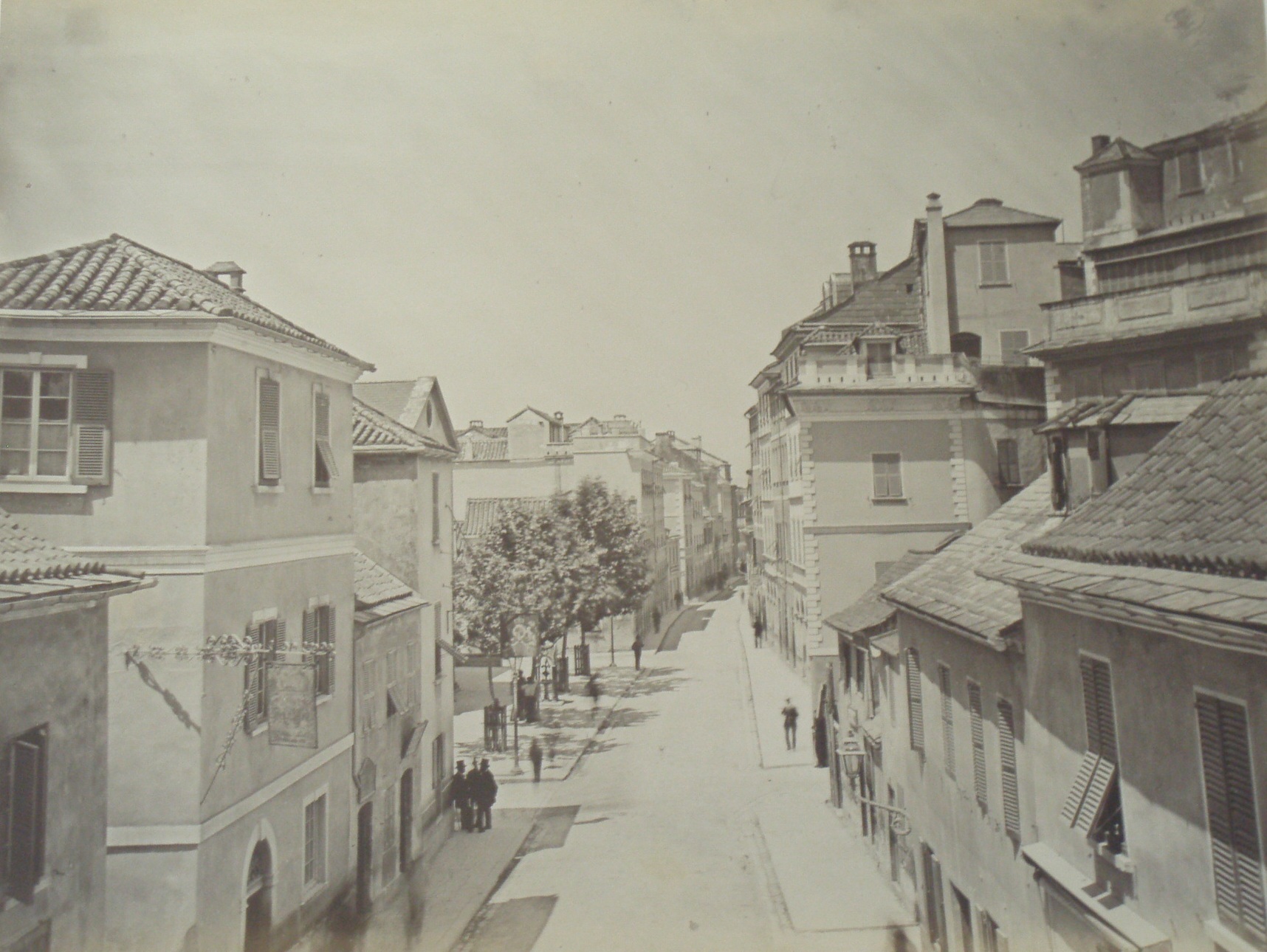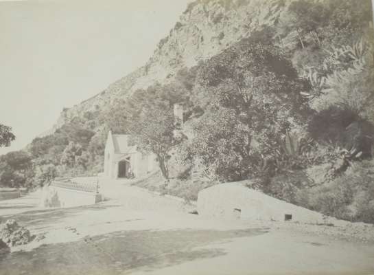 41 albumen prints: Gibraltar from Campamento, view from San Felipe, from Santa Barbara, from English Lines, N. front from British lines, The Barracks Catalan Bay, Catalan Bay, The Neutral ground & Spanish & British lines, S. Barracks, Casemate Square, Old South Port, from the Old Mole, from the New Mole, The Land Fort, Old Mole and Water Port from the Castle, The North Town (two views), The Line Wall north of Commercial Square, Water Port or Main Street, East side Segnal Station from the Old Guard House, from the Old Stone Sentry Box, Signal station from Foot Path, The Castle from the Queens Road, On the Road to Governor's Cottage, Governor's Cottage & Lighthouse, Hendmill Hill, Windmill hill from the North, Windmill Hill & O'Hara's tower, Gilbraltar South from the Alameda, The Alameda the Grand parade, The Alameda with troops on parade, View from Buena Vista looking S.W., View looking N., The Alameda the lover's walk north (and south), Europa Pass, Europa Flats, Rosia, Corkwoods San Roque, 16 by 22cm, and two photographs of Tangiers, morocco album, worn, spine lacking, c.1870-80
