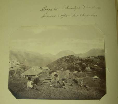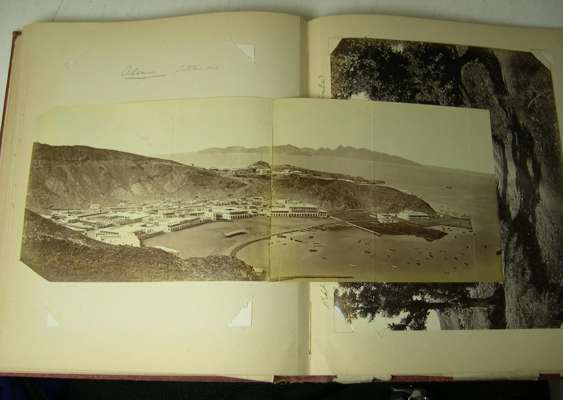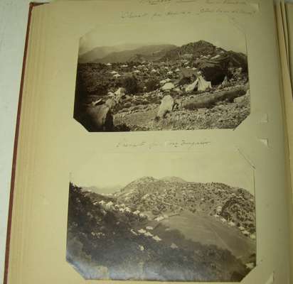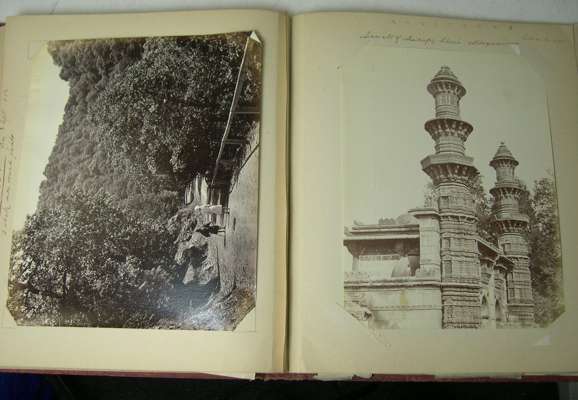 Album of 60 albumen prints, comprising Agra fort, Agra: Tomb of It-mad-ud Dowlah, Agra: the Taj from the River Jumna, Agra: Skiandra Bagh, Agra: the Taj from the gardens; Delhi: the Cashmere gate, Delhi: Kootub Minar; Delhi: Humaiyan's tomb, Fatterpore Sikri (Panch Mahalk), Fatterpore Sikri (Selaim's tomb); Bombay: the port; Bombay: Malabar Hill, Bombay: Elphinstone Circle; Bombay: native bullock cart; Lahore: the fort; Lahore: Jehangir's tomb; Jaipur: Hawa Mahal; Umber: the palace from the lake; Peshawar: parade ground; Rawal Pindee: encamping ground; Peshawar Valley: Cheerat; Cheerat from my bungalow; Attock: Fort & river Indus, Cherat River: Punbab; Dugshai (Himalayas): Hospital & officers's mess; Himalayas: Dugshai; Subathoo from the hospital; Kasauli (Himalayas): the mall; Kasauli (Himalayas): parade ground & depot; Simla from Gorton Castle [by Bourne]; Ahmedabad Gujerat: the Konkria tank; Simla, ride near Jakho [by Bourne]; Ahmedabad: Minarets of Mahafiz Khan's morgue; Simla: snowy range as seen from top of Jakho; Ahmedabad Gujerat: Konkrai tank; Simla: view of Jakho [by Bourne]; Ahmedabad Gujerat: Konkria tank; Himalays: Fagoi Dak bungalow near Simla [by Bourne & Shepherd]; Ahmedabad Gujerat: engtrance to jail & Bhuder; Ahmedabad Gujerat: entrance to Shah Alum's mosque; Himalayas: road between Theog & Mariana [by Bourne & Shepherd], Jamrood Fort near Khyber Pass; Himalayas: Matiana dak & village near Simla [by Bourne & Shepherd], Entrance to Khyber Pass; Himalayas: road betwwen Matiana & Markanda [by Bourne & Shepherd], View looking toward Khyber pass; Markanda dak bungalow 40 miles from Simla [by Bourne]; Fort Ali Murfid: Afghanistan; Himalayas: village of Markanda; all captioned and dated 1880-1882, all inserted into page slits at corners, none stuck down, from 23 by 30cm - 16 by 20cm.; and 11 albumen prints of Himalayan scenery & inhabitants [possibly Kafiristan], 15 by 21cm.; collection of Lt. H. Borradaile; together with vellum bound scrapbook of Lt. H. Borradaile, lettered "A Victorian scrap-book. Borradaile, 1870-1887", folio, articles, clippings & ephemera relating to military career & successful completion of military courses by Lt. H.B. Borrowdaile in Persian, Hindustani, Signalling &c. at Simla, Kasauli, Borrowdaile's distinguished command of the Battery of Horse Artillery at the battle of Tel-el-Kebir, press articles on Kafirstan, & construction by 32nd Punjaub Pioneers of the Kandahar & Hurnai Railway, vellum binding by Sangorski & Sutcliffe; India, Album 43 photographs of landscape, military maneouvres & British military life in India including photographs of the Coronation Durbar in India by Hands of Jubbalpore, 8.5 by 7.5cm - 21.5 by 29cm (3)