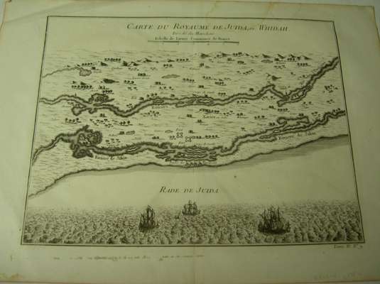 A collection of maps and prints relating to Africa and India, including Bellin, J. Ville de diu. [Paris, c.1750]. Approx. 13.5 by 18cm mounted, uncoloured; Ancient Africa London, 1798. Approx 24 by 19cm, uncoloured, some light spotting; Arrowsmith, A. Africa. London, 1828. Approx 29 by 36cm, hand coloured in outline; Bellin, J. Carte du Royaume de Juida, ou Whidah. [Paris, c. 1750]. Approx 26 by 36cm, uncoloured, previous fold; Parr, N. S.W. prospect of William's fort at Whidah. [London, c.1745]. Approx. 27 by 44cm, tear to left margin; Photographs Three small portrait prints pasted onto leaf, including two of Mr & Mrs Davis, c. 1880; Slavery Africa, "Am I not a man and a brother." London, c.1850. Approx 25 by 40cm, coloured, mounted; Slavery British humanity or African felicity in the West Indies. London, 1788. Approx 30 by 45cm, coloured, tears to edges; and 8 other items relating to Africa (16)