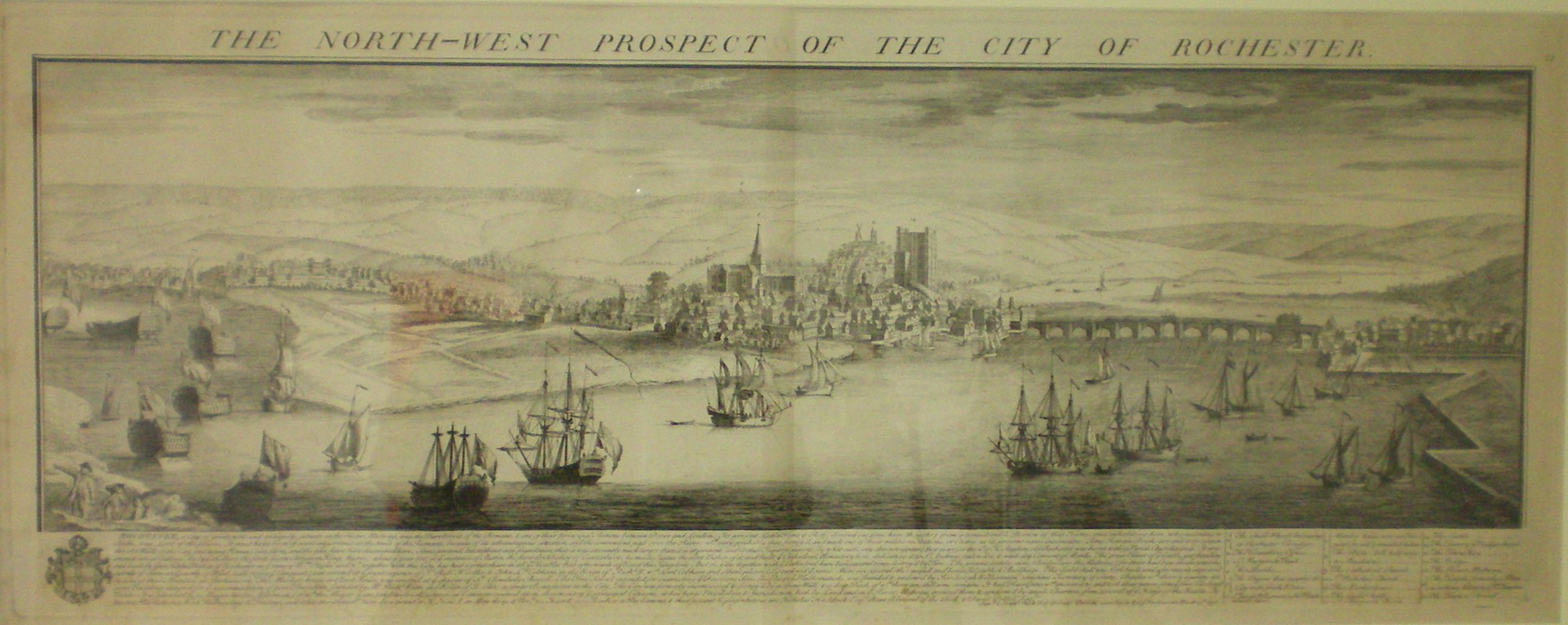 The North-West prospect of the city of Rochester. London: Sayer, c.1772. Approx. 33 by 84 cm, framed [Hogarth frame] and glazed, central fold visible