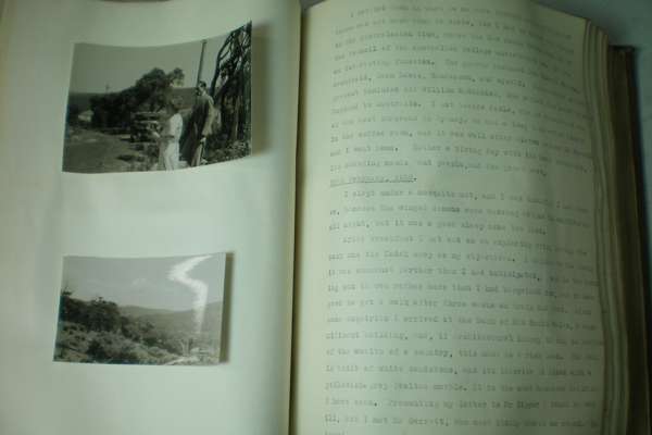 A journey round the world . 3 thick volumes, 4to, typescript journal of a tour round the world [the greater part dealing with Australia], January-April 1935, 206 pp. text, illustrated with 645 personal photographs, average size 9 by 13cm., original buckram bindings