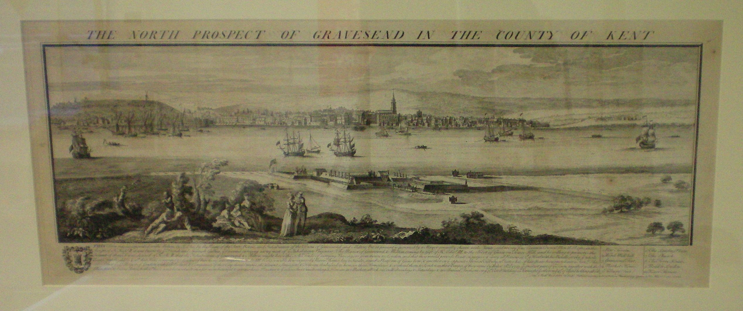 The North prospect of Gravesend in the county of Kent. London, c.1772. Approx. 33 by 84 cm, framed [Hogarth frame] and glazed, central fold visible