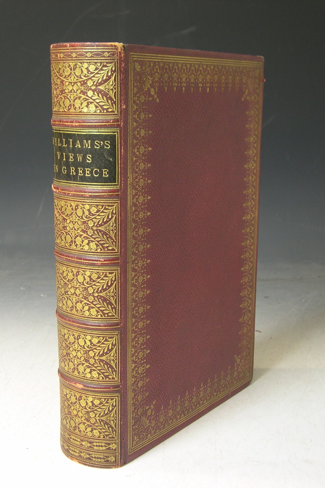 Select views in Greece. London: Longman, 1827. Large 8vo, 2 volumes bound in one, engraved title & 64 engraved plates, tissue guards, red morocco gilt, very slightly rubbed at extremities, a few plates working loose, a clean copy