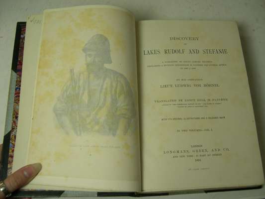 Discovery of Lakes Rudolf and Stephanie. London: Longmans, Green and Co., 1894. 8vo, 2 volumes, portrait frontispiece, 3 maps [2 folding and coloured], plates, half titles, pages uncut, later half morocco gilt, marble endpapers, some light foxing to tissue guards, both maps partially strengthened with linen (2)