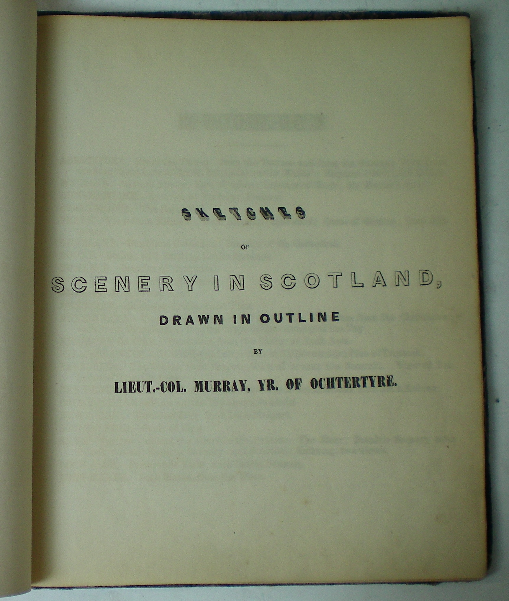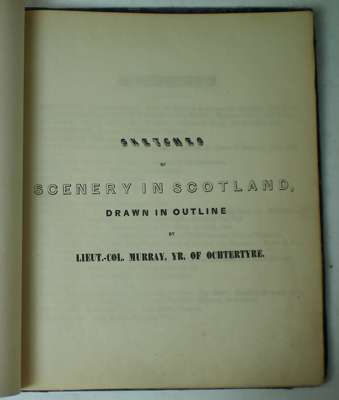 Sketches of scenery in Scotland, drawn in outline. 4to, presentation copy inscribed on endpaper "Mrs Semple, with Lt. Col. Murray's compls." lithographed title, contents page and 42 plates lithographed by Morison and S. Leith after Murray, contemporary half morocco, worn, lacks spine, upper cover detached