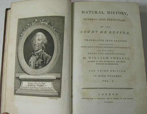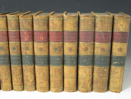 The natural history of birds. London: A. Strahan, 1793. 9 volumes, 8vo, 192 engraved plates; Quadrupeds. London: A. Strahan, 1791. 9 volumes, 8vo, engraved frontispiece portrait and 306 engraved plates, several folding; contemporary tree calf, spines gilt, morocco labels, a few spots, head of a few spines lightly rubbed (18)