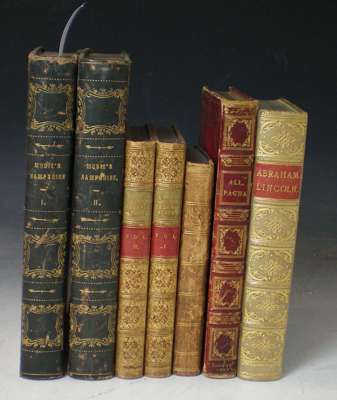 Hampshire. Winchester: J. Robbins, [n.d.]. 2 volumes, 8vo, additional engraved titles, plates, lacking 1 map and 2 plates, titles and dedication leaf cut down, contemporary calf, spotted, rubbed; [Beauchamp, A.] The life of Ali Pasha. London, 1823. Second English edition, 2 portraits, map and folding plate, red morocco, heavy spotting, offsetting to plates, map, title & text, binding worn; and 2 others [Hall & Charnwood] (6)