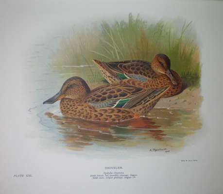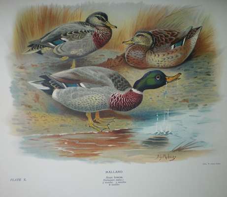 The natural history of the British surface-feeding ducks. London: Longmans, Green & Co., 1902. First edition, 4to, number 446 of 600 large paper copies, 6 photogravures, 41 coloured plates (of which 13 chromolithographed) by Millais and Archibald Thorburn, tissue guards, original cloth, joints split
