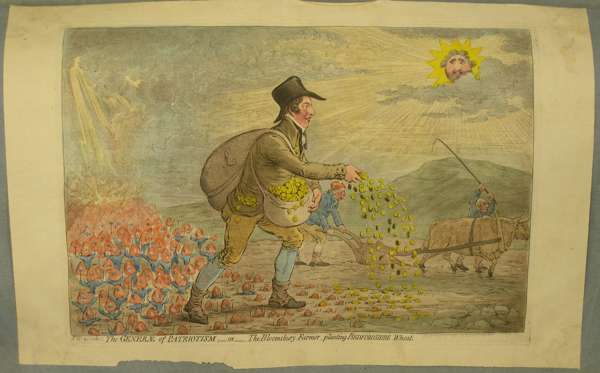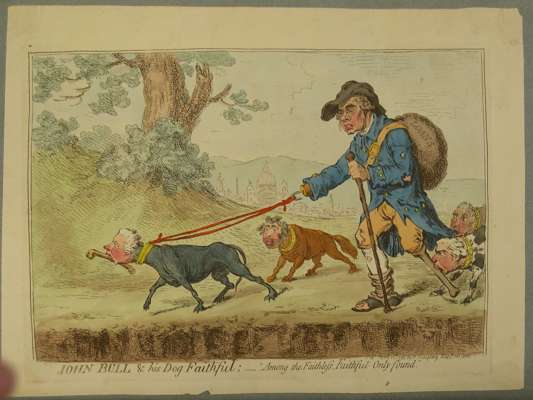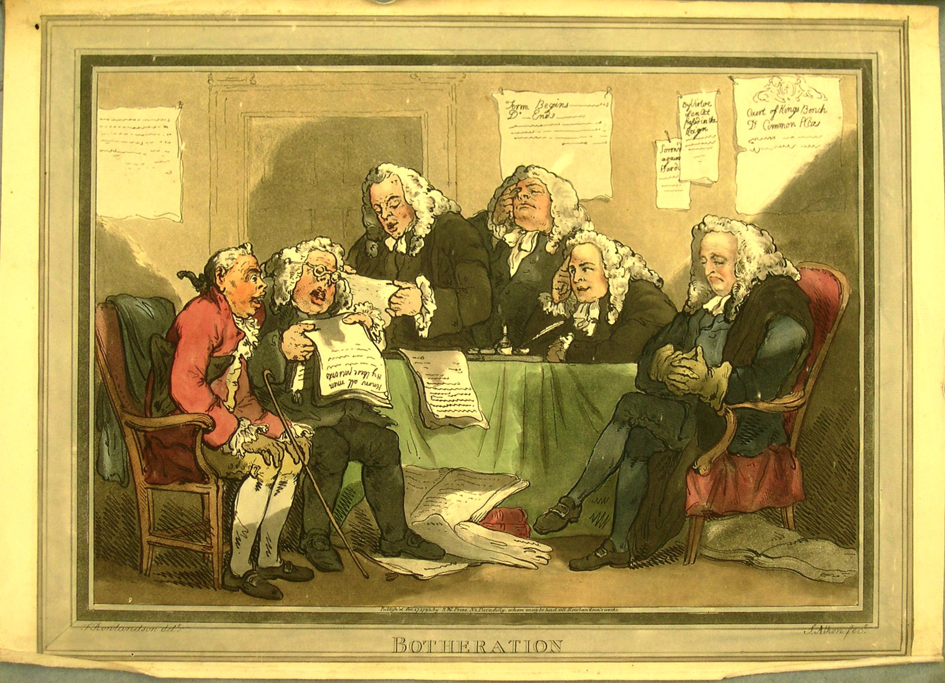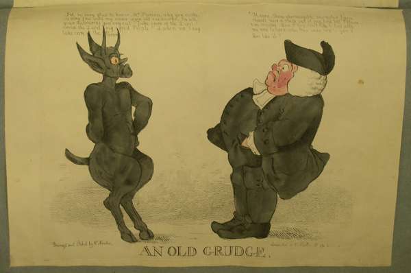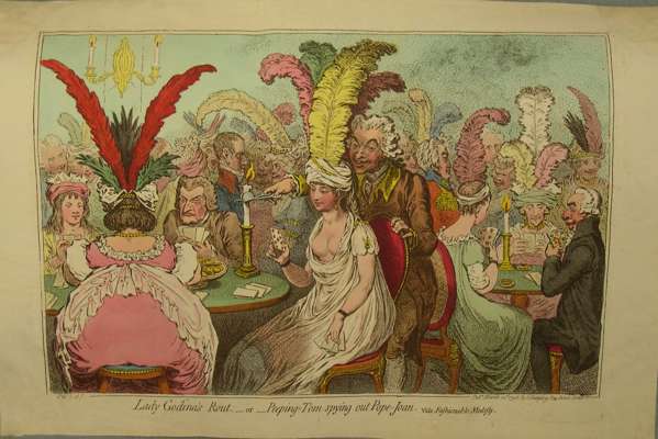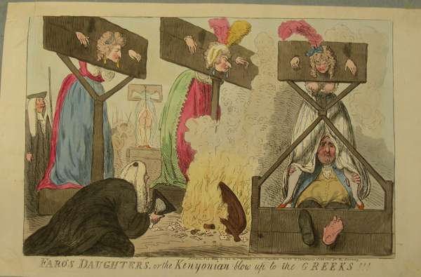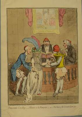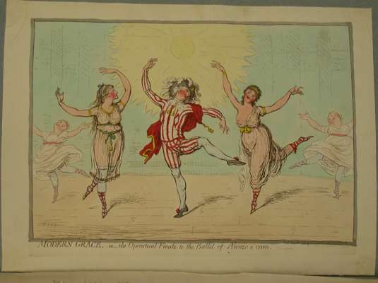 Botheration. 1792; The Convocation, 1792; Amputation, 1793; The Consultation, 1792, hand-coloured aquatints by S. Alken after Rowlandson; Gillray, J. Lady Godiva's rout. 1796, H. Humphrey, 29.5 by 42.5cm.; Faro's daughter. 1796, H. Humphrey, 28 by 42.5cm.; A keen-sighted politician warming his imagination. 1795, H. Humphrey, 41 by 28cm.; Democratic leveling. 1796, H. Humphrey, 39.5 by 28cm.; The generae of patriotism. 1796, H. Humphrey, 27.5 by 42cm.; John Bull & his dog faithful. 1796. H. Humphrey, 29 by 39cm; Newton, R. Babes in the wood. 1794. W. Holland, 27 by 36.5cm.; Newton, R. An old grudge. R. Newton, 29.5 by 41.5cm.; Gillray, J. Modern grace, or the operational finale to the ballet of Alonzo e caro. 1796. H. Humphrey, 30 by 41cm.; Opening of the budget. 1796, H. Humphrey, 29 by 42cm.; Two-penny whist. 1796. H. Humphrey, 29 by 41cm.; Hint to modern sculptors, as an ornament to a future square. 1796, H. Humphrey, 39 by 30cm., hand coloured etchings, all stuck down at corners; & others, similar, late nineteenth century half morocco