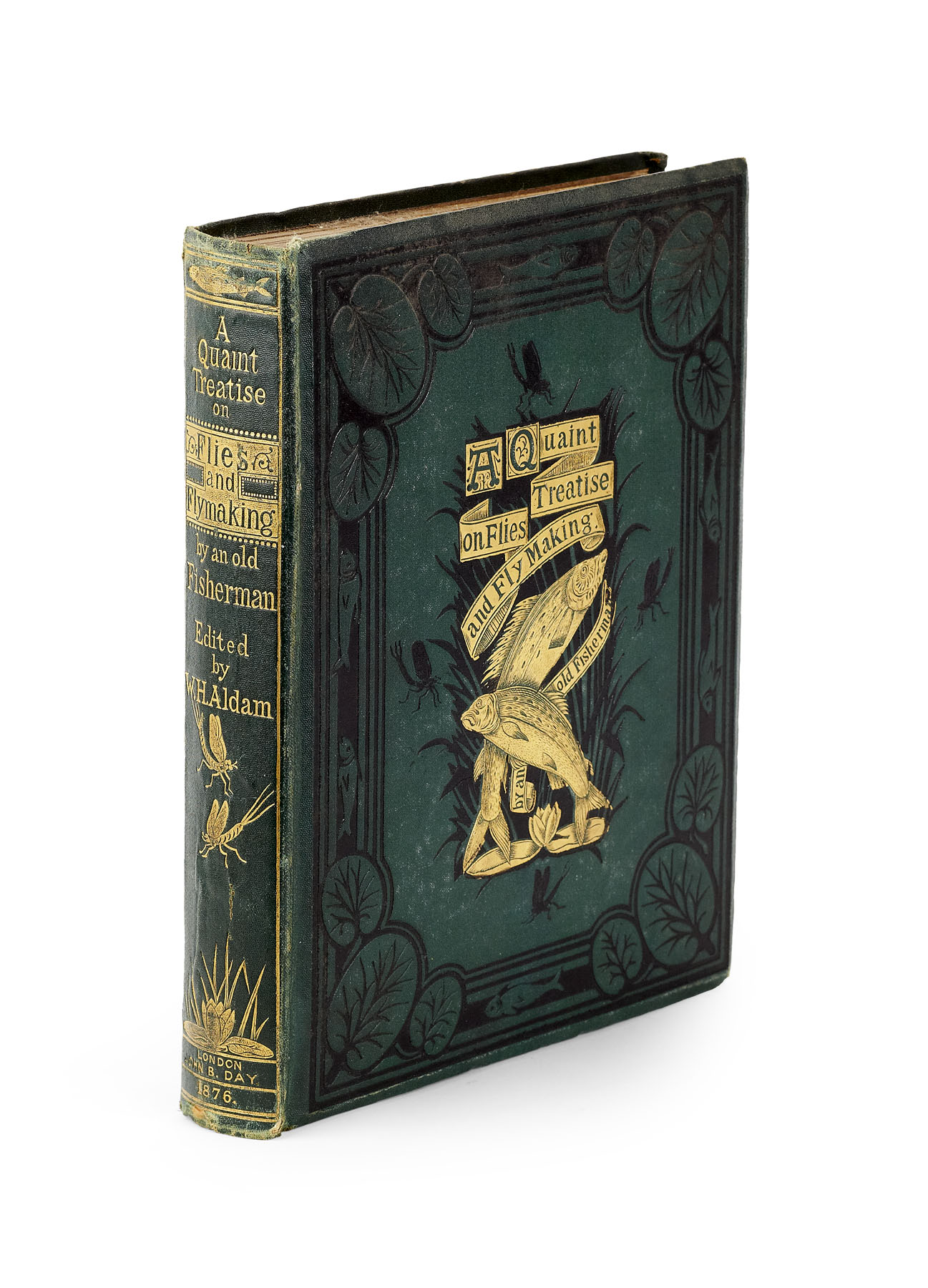 A quaint treatise on flees and the art of artyfichall flee making. London: John B. Day, 1876. 4to, half title, two chromolithograph plates, 25 specimen flies on 22 sunken mounts, presentation copy from the editor [inscribed on the title], original decorative cloth gilt, some slight rubbing to edges, heavy foxing