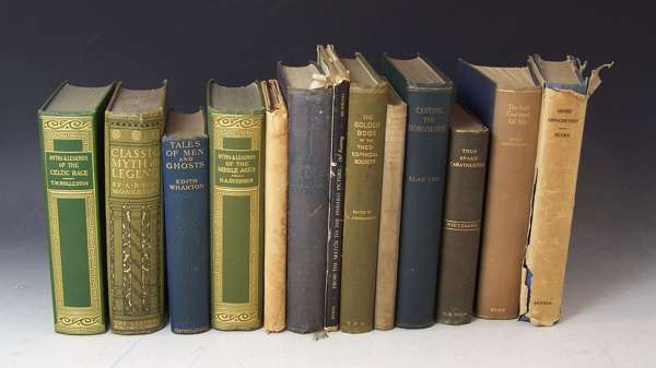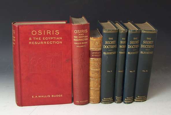 Osiris and the Egyptian resurrection. London, 1911. 8vo, 2 volumes, folding frontispieces, folding plate, uncut, original cloth gilt; Spence, Lewis The myths of Ancient Egypt. London, 1915. 8vo, original green cloth gilt; [Idem.] The myths of Mexico and Peru. London, 1914. 8vo, original green cloth gilt; [Idem] Myths of legends of Babylonia and Assyria. London, 1920. 8vo, original green cloth gilt; Guerber, H.A. Myths of the Norsemen. London, 1919. 8vo, original green cloth gilt, previous inscription to endpaper; Keightley, Thomas The mythology of ancient Greece and Italy. London, 1854. Third edition, 8vo, plates, contemporary prize calf gilt, rubbed at edges, foxing; Blavatsky, H.P. The secret doctrine: the synthesis of science, religion and philosophy. London, 1918. Third edition, 8vo, 4 volumes [including index], original blue cloth gilt, rubbing; Beamish, Richard The psychonomy of the hand. London, 1865. Second edition, 4to, original cloth gilt, gilt stamp to upper board, chipped at head and tail; Kingsford, Dr. Anna The spiritual hermeneutics. London, 1886. 8vo, original boards, rubbed, discoloured at edges; Nivedita, Sister Myths of the Hindus & Buddists. London, 1918. 8vo, original cloth; and 29 others on myth, legends and theosophy (43)