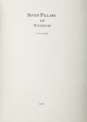 Note: A fine copy of Lawrence's masterpiece, "a testimony to his vision and persistence and a fulfilment of his desire to write an epic which might stand comparison in scale and linguistic elegance with his beloved Morte d'Arthur and C.M. Doughty's Arabia deserta" (L. James, Oxford DNB.) Tipped in at the beginning are two receipts for fifteen guineas for this copy from W.H. Haslam Esq., and a typescript copy of a letter from T.E. Lawrence to F.R. Rodd, [with a note stating that the original letter is attached to Mr F.R. Rodd's copy of The Seven Pillars].