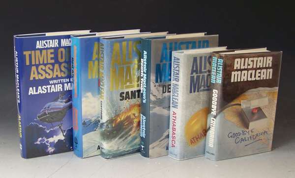 H.M.S. Ulysses. 1955, some fading to backstrip; The guns of Navarone. 1957, price clipped, previous ink inscription to front endpaper; South by Java Head. 1958, previous ink inscription to front endpaper; Night without end. 1958, some foxing to wrapper, price clipped; Fear is the key. 1961, price clipped; Ice station Zebra. 1963, Book Society Choice wrapper; Where eagles dare. 1967, price clipped; Force 10 from Navarone. 1968, previous ink inscription to front endpaper, backstrip faded; Puppet on a chain. 1969; Caravan to Vaccares. 1970; and 16 others by Maclean; all London, first editions, original cloth, dustwrappers (26)