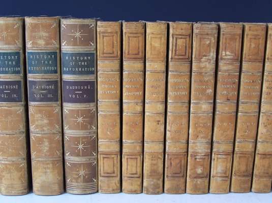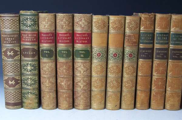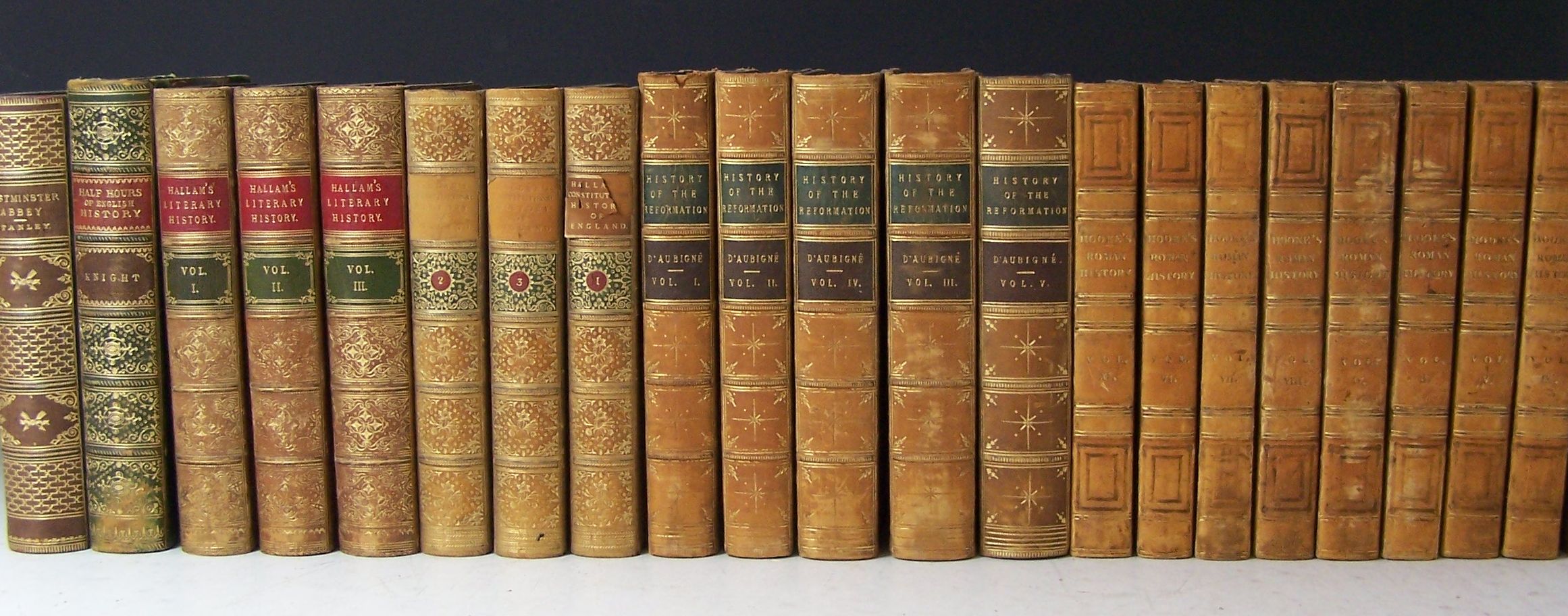 Introduction to the literature of Europe. London, 1847. 3 volumes, 8vo, contemporary calf, morocco labels; Idem The constitutional history of England. London, 1832. 3 volumes, 8vo, contemporary calf, lacking three labels; D'Aubigné, J.H.M. History of the great reformation of the sixteenth century in Germany, Switzerland. London, 1841. 5 volumes, 8vo, contemporary half calf; Hooke, N. The Roman history. London, 1818. 11 volumes, 8vo, contemporary calf, spines faded; and 2 others (24)