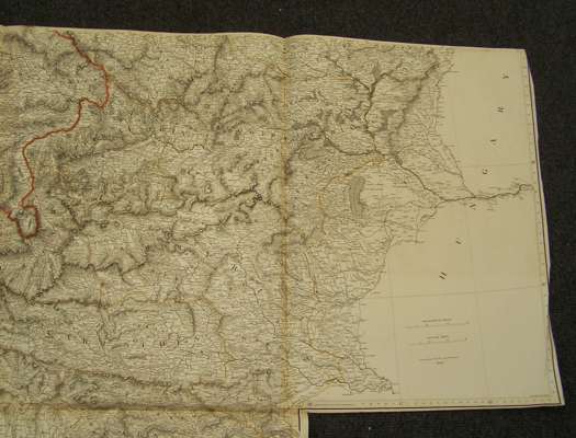 Map of the physical divisons of Germany. London: A. Arrowsmith, 1816. Engraved map, hand-coloured in outline, 6 sheets, each sheet 670 x 990mm., joined as three, with two additional small panels attached at foot, strengthened at folds and edges on verso; Weiland, C.F. General charte von dem Königreiche Hanover. Weimer: Geographischen Instituts, 1817. Engraved map, hand-coloured in outline, 630 x 860mm., Weiland, C.F. General charte von der Preussischen Monarchie. Weimar, 1817. Engraved map, hand-coloured in outline, 630 x 860mm.; Weiland, C.F. General Charte des Oestreichischen Kaiserstaats. Weimar, 1817. Engraved map, hand-coloured in outline, 630 x 860mm.; Faden, W. Map of the central states of Europe, situate between France and Russia, describing their new limits. London: W. Faden, 1816. Engraved map, hand-coloured in outline, 4 sheets, each sheet 667 x 770mm., joined as two, neatly strengthened at folds on verso (5)