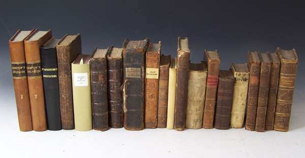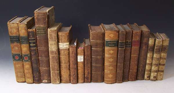 Hogarth. London, 1791. 8vo, 2 [of 3] volumes, engraved titles and plates, contemporary tree calf gilt, hinges cracking; Mercier, J. B. Solitude considered with respect to its influence. London, 1691. 8vo, contemporary calf, rebacked; Hanmer, Meredith The ancient ecclesiastical histories. London, 1663. Sixth edition, 4to, later calf backed boards, worn; Harris, William An historical and critical account of the life and writings of Charles I. London, 1758. 8vo, original boards, hinges split; Pinder, Peter The poetical works of... Dublin, 1791. 8vo, contemporary calf, rubbed, some worm damage to outer edge; Foote, Samuel The mayor of Garratt. London, 1794. 12mo, frontispiece, plates, contemporary calf backed boards, rubbed; Southey, Robert Joan of Arc. Bristol, 1798. Second edition, 8vo, 2 volumes, frontispieces, contemporary calf, rubbed; and a quantity of others. Sold not subject to return (qty)