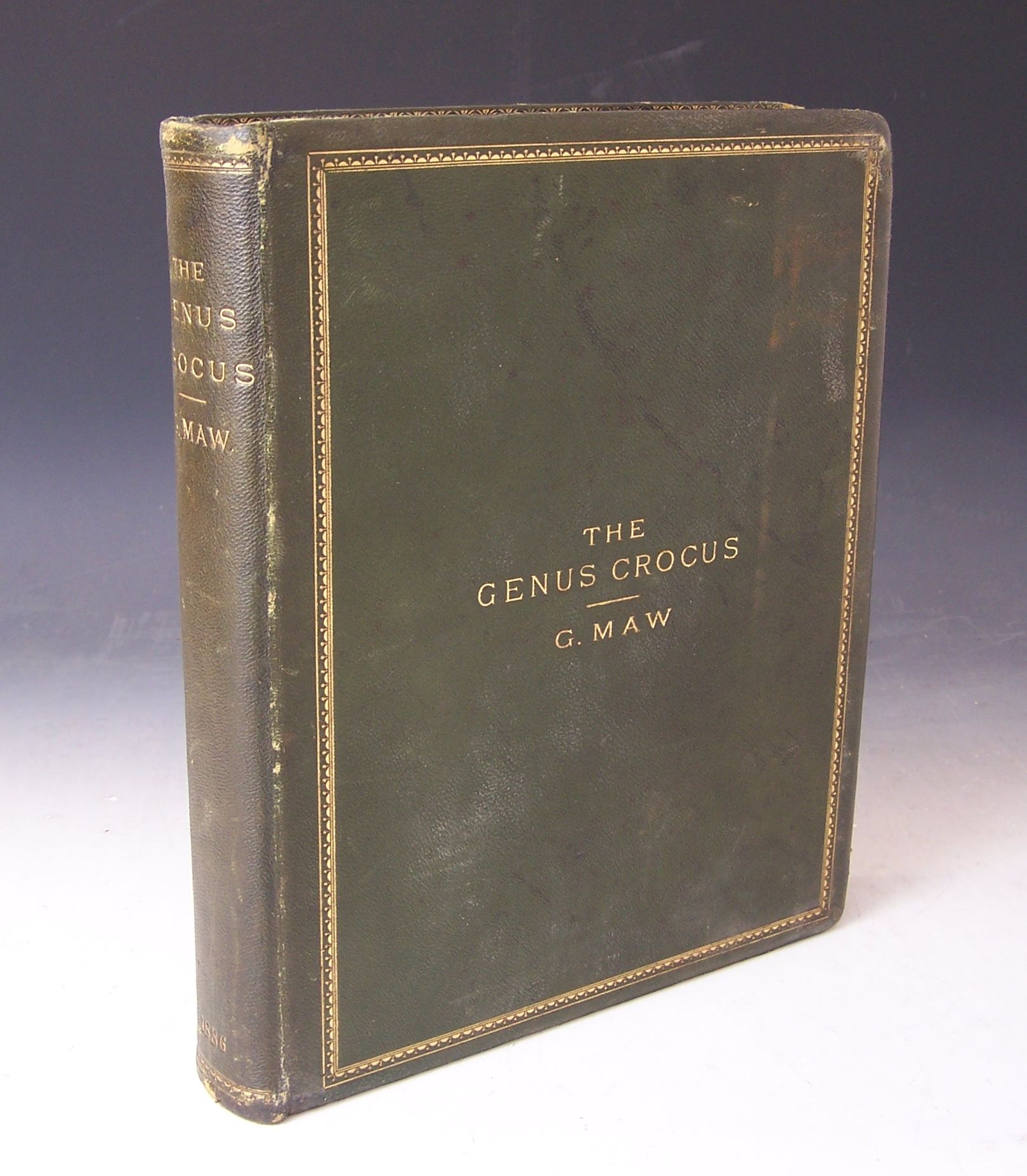 A monograph of the genus crocus. London: Dulau and Co., 1886. First edition, 4to (305 x 244mm.), half-title, 81 hand-coloured lithographed plates after Maw, double-page map, 2 double-page tables, contemporary green morocco gilt, some slight rubbing to edges