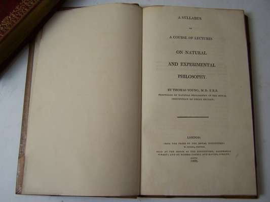Note: Scarce. 'Young was the last of the natural philosophers who could know all that was to be known. He was the perfector of the wave theory of light, he expounded the mechanism of vision, stated the laws of blood circulation, introduced the modern conceptions of 'energy' and 'work done'' evolved a sound theory of tides, and helped decipher the hieroglyphics of the Rosette Stone' (PMM 259 note).