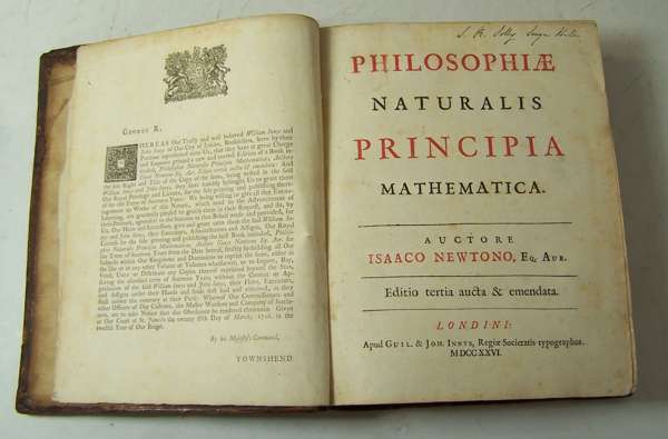 “This edition was the last published during the author’s lifetime and the basis of all subsequent editions. It was edited by Henry Pemberton, M.D., F.R.S., and contains a new preface by Newton and a large number of alterations, the most important being the scholium on fluxions, in which Leibnitz had been mentioned by name. This had been considered an acknowledgement of Leibnitz’s independent discovery of calculus. In omitting Leibnitz’s name in this edition, Newton was criticised as taking advantage of an opponent whose death had prevented any reply. Halley’s verses were restored to their original form.” Babson