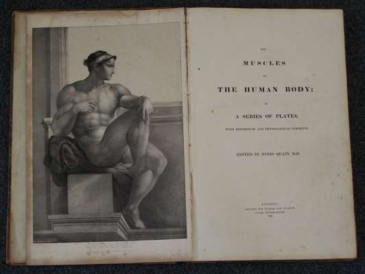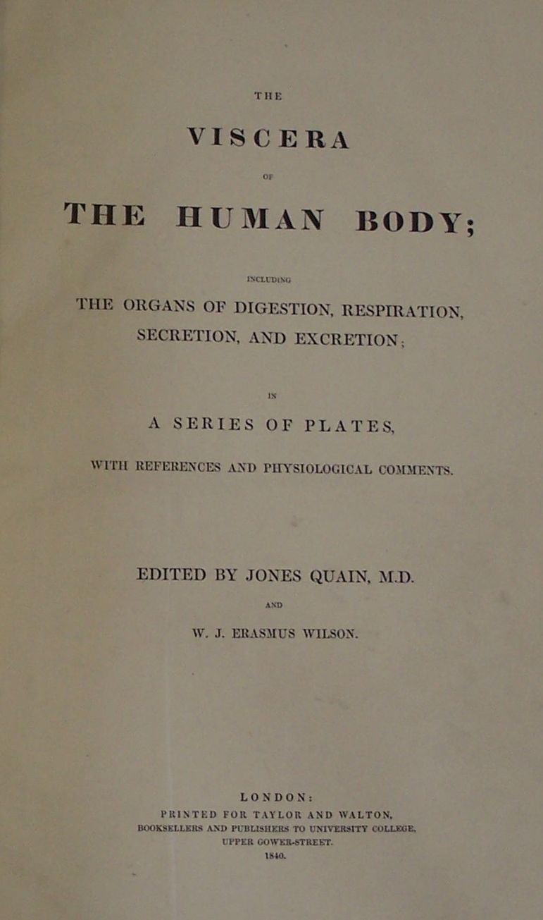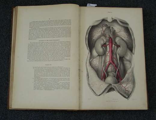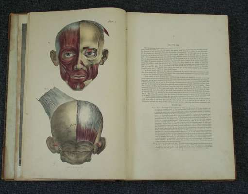 The muscles of the human body... London, 1836. Folio, 49 coloured plates, 2 uncoloured plates; [Idem] The vessels of the human body... London, 1837. Folio, 48 colour plates, 2 uncoloured plates [bound with] The nerves of the human body including the brain & spinal marrow and organs of sense... London, 1839. Folio, 38 uncoloured plates; [Idem] The viscera of the human body ; including the organs of digestion, respiration, secretion and excretion... London, 1840. Folio, 31 full page uncoloured plates [bound with] The bones and ligaments of the human body... London, 1842. Folio, 30 uncoloured plates; all 3 volumes bound in contemporary half calf, worn, foxing and water staining to plates throughout all 3 volumes (3)