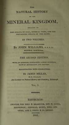 The natural history of the mineral kingdom. Edinburgh: Bell & Bradfute, 1810. Second edition, 2 volumes, 8vo, 2 engraved frontispieces, errata leaf, contemporary calf, spines gilt, morocco labels (2)