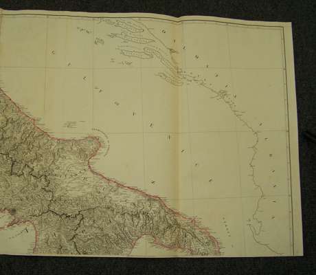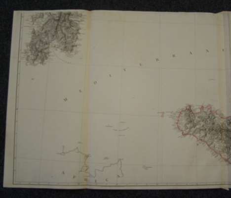 Map of South Italy and adjacent coasts. London: A. Arrowsmith, 1807. Engraved map on 4 sheets, each sheet 650 x 810mm., joined as two, hand-coloured in outline, strengthened at folds on verso, one 10cm tear repaired