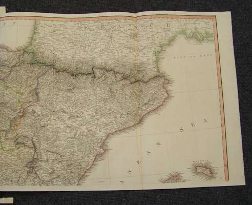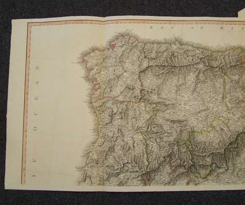A new map of Spain & Portugal, exhibiting the chains of mountains... London: W. Faden, 1810. Large engraved map on 4 sheets, each sheet 830 x 590mm., joined as two, hand-coloured in outline, salmon wash border