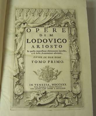 Opere. Venice: Stefano Orlandini, 1730. 2 volumes, folio, titles within engraved borders, secondary title to volume 1 printed in red and black and with engraved vignette, engraved portrait by C. Orsolini, 51 engraved plates by Giuseppe Filosi and by Giuliano Giampicoli, contemporary mottled calf, spines gilt, small scrape to two boards