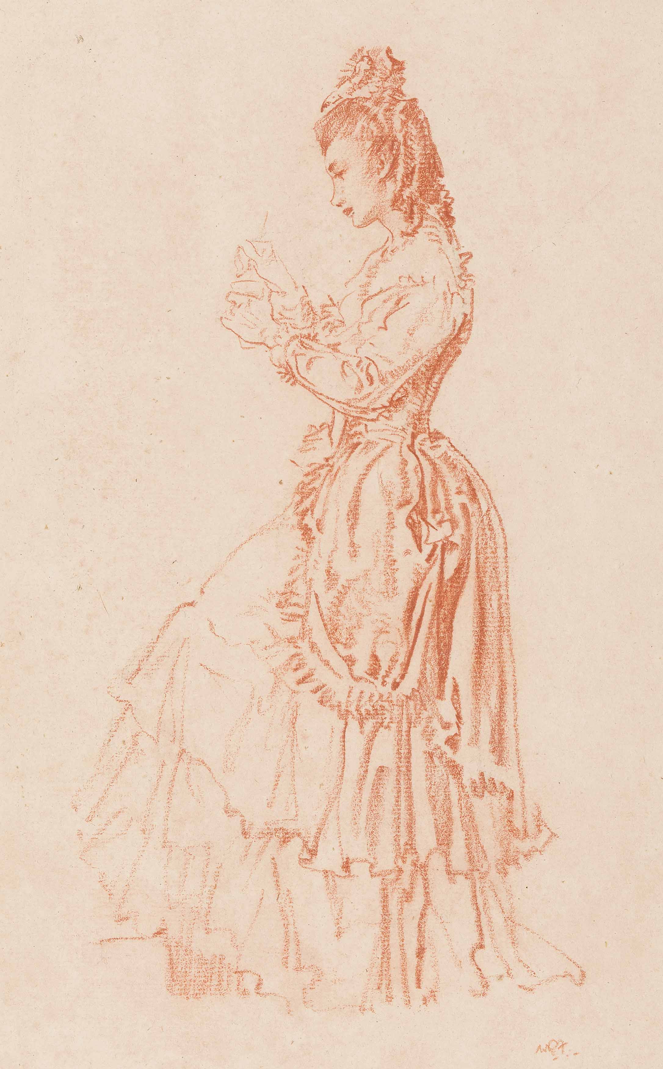 Signed with initials, sanguine