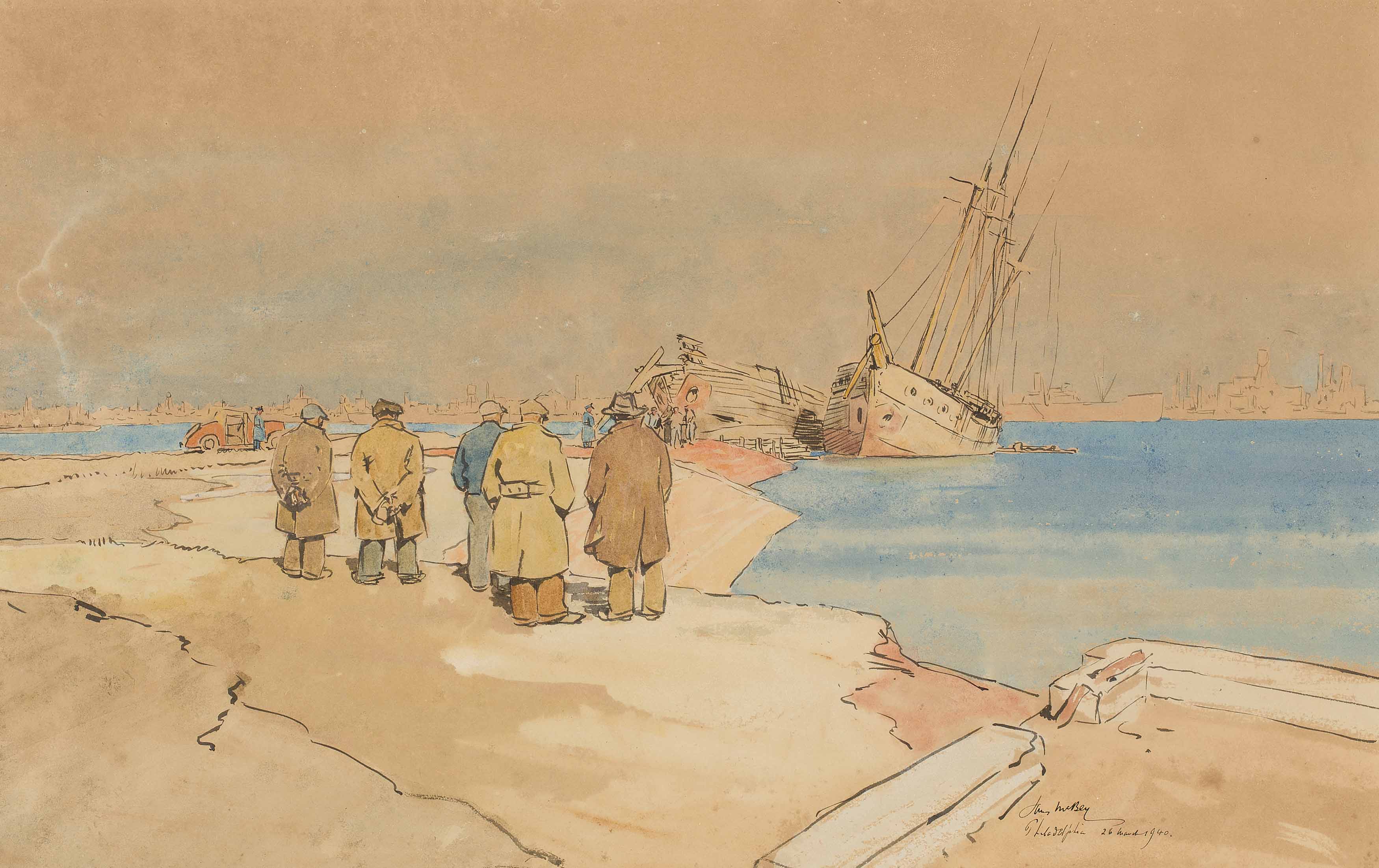 Signed, inscribed and dated '26 March 1940', pen and ink and watercolour
