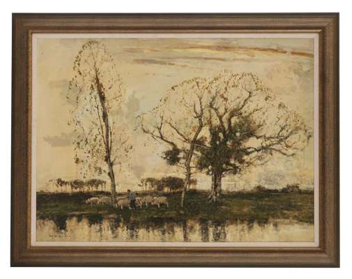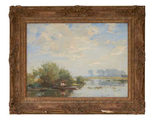 FISHERMEN CASTING NETS IN A CLASSICAL RIVER LANDSCAPE
