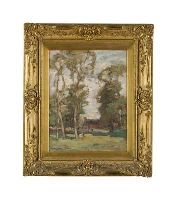 FARM BUILDINGS THROUGH THE TREES