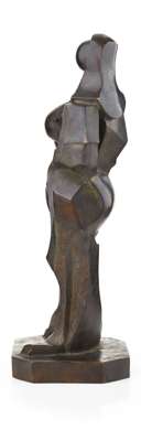 Wauer's sculpture is a stylistic product of his immersion in this highly creative melting pot. Characterised by forms at once fluid and angular, his work evokes a sense of movement and rhythm which is arguably more expressive than the work of his Futurist counterparts to whom he can logically be compared. In the work offered here for sale, Wauer subverts a traditional contrapposto standing nude figure, maintaining an organic sensuality despite the Modernist allusions to mechanisation of the human form.