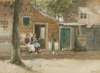 GIRLS KNITTING BY THE KITCHEN DOOR