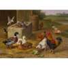 HENS, PIGEONS AND DUCK IN A FARMYARD