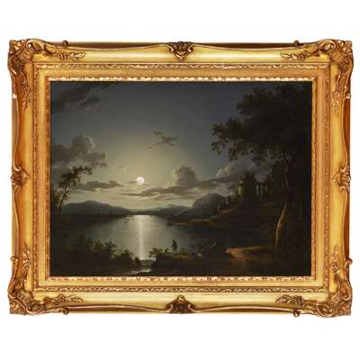 MOONLIGHT SCENE WITH FIGURES ON A LAKE