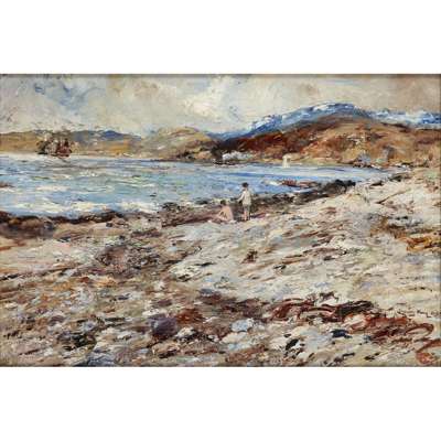 BATHERS ON A ROCKY COAST