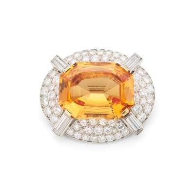 The design of this brooch is identical to two which featured in a Cartier necklace previously sold at Christie's sentinel auction “Jewellery and Objects by Cartier” held in Geneva on the 25 May 1993, lot 799. As with this example, that necklace was unsigned but was presented with a catalogue footnote “Although not signed, this necklace was purchased by the present owner at Cartier, London in July 1962”.