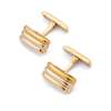 Each rectangular plaque composed of tri-coloured batons, to a T-bar terminal, signed Cartier, numbered, Swiss assay marks, width of plaque 1.7cm