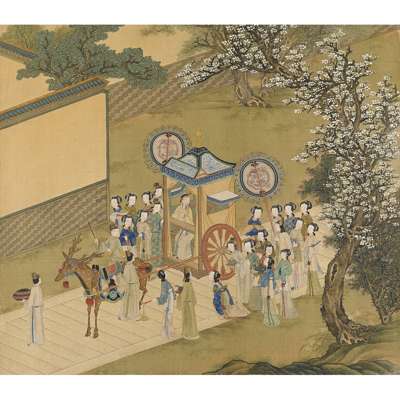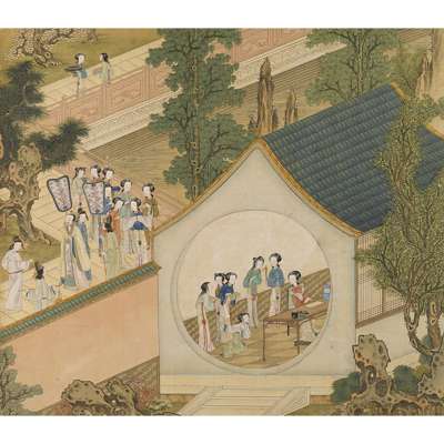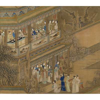 four mounted album leaves, ink and colour on silk, two with gourd shaped seal (4)