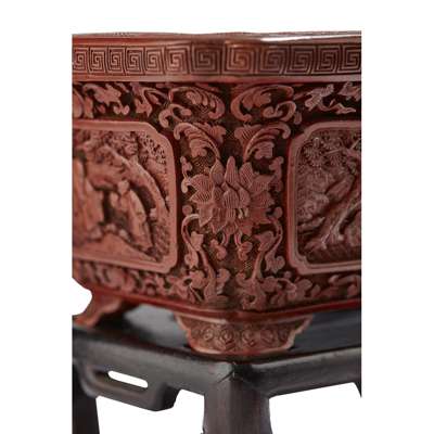 For comparable jardinières, see Kwan: Chinese Lacquer, no. 106, p. 296-7 and Wu: Masterpieces of Chinese Carved Lacquerware in the National Palace Museum, no. 50.