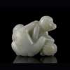LARGE PALE CELADON JADE 'MONKEY AND PEACH' GROUP