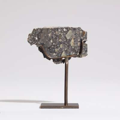 Moon rocks rank among the rarest substances found on Earth. Following an asteroid impact on the lunar surface, surface rocks are propelled into space, with some eventually falling to Earth. Typically uncovered in deserts due to the arid climate preventing weathering, meteorites offer invaluable insights on the processes that shaped both the Moon and Earth billions of years ago. The current specimen, an endcut from the lunar meteorite NWA 11303, was discovered in the Sahara in 2017.
