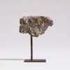 feldspathic breccia, contorted surface from impact melt, the reverse with mottled white feldspar, raised on a bespoke mount