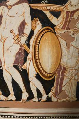 Despite his significant contributions, the artist's true identity remains a mystery, with scholars attributing his work based on distinct stylistic features such as his portrayal of faces in three-quarter view and his use of a white saccos or hair wrap, from which he derived his name. The White Saccos Painter made innovative use of the white ground technique, which involves applying a white slip to the ceramic surface before painting. This technique allowed for a greater range of colours and a heightened sense of luminosity in the finished product. His mastery of composition is evident in the careful arrangement of figures and the dynamic interplay of space and form. Figures are rendered with a remarkable attention to detail, with anatomical accuracy and expressive gestures lending a sense of dynamism to the narrative.